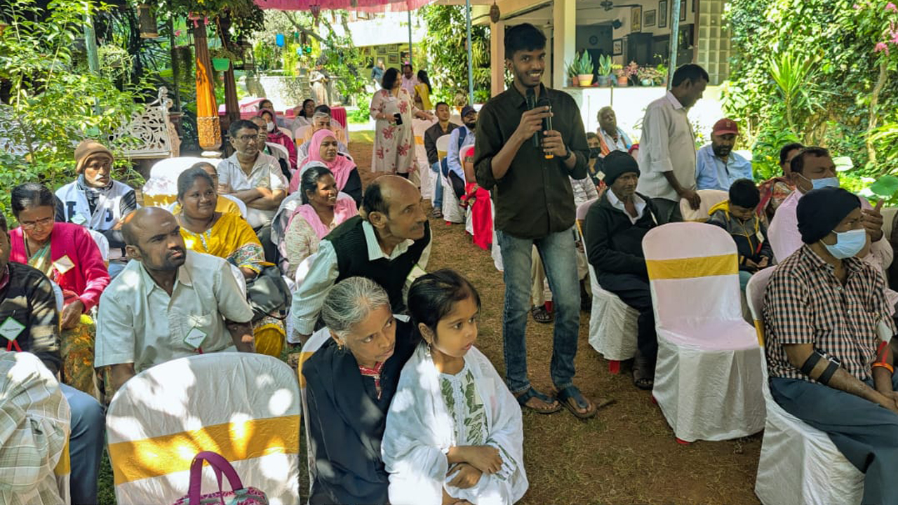 4. Dialysis Patient Meet: Ashirvadam organised a meet for dialysis patients from St. John's Hospital in Bengaluru on 15th November 2025. The meet was attended by 46 dialysis patients, along with 26 caregivers, 8 staff members from the Medical Social Work (MSW) department of the hospital, and Dr. P.S. Varghese, CMS, St. John's Hospital as the chief guest. The program was conducted in a very cordial manner and included activities such as introductions, felicitations, experience sharing, meditation, singing, and dancing. It concluded with an announcement by Mr. Davis Karedan regarding the extension of further support—over and above the existing support—for blood tests for patients in need. The program ended on a joyful note with a hearty lunch enjoyed by all.